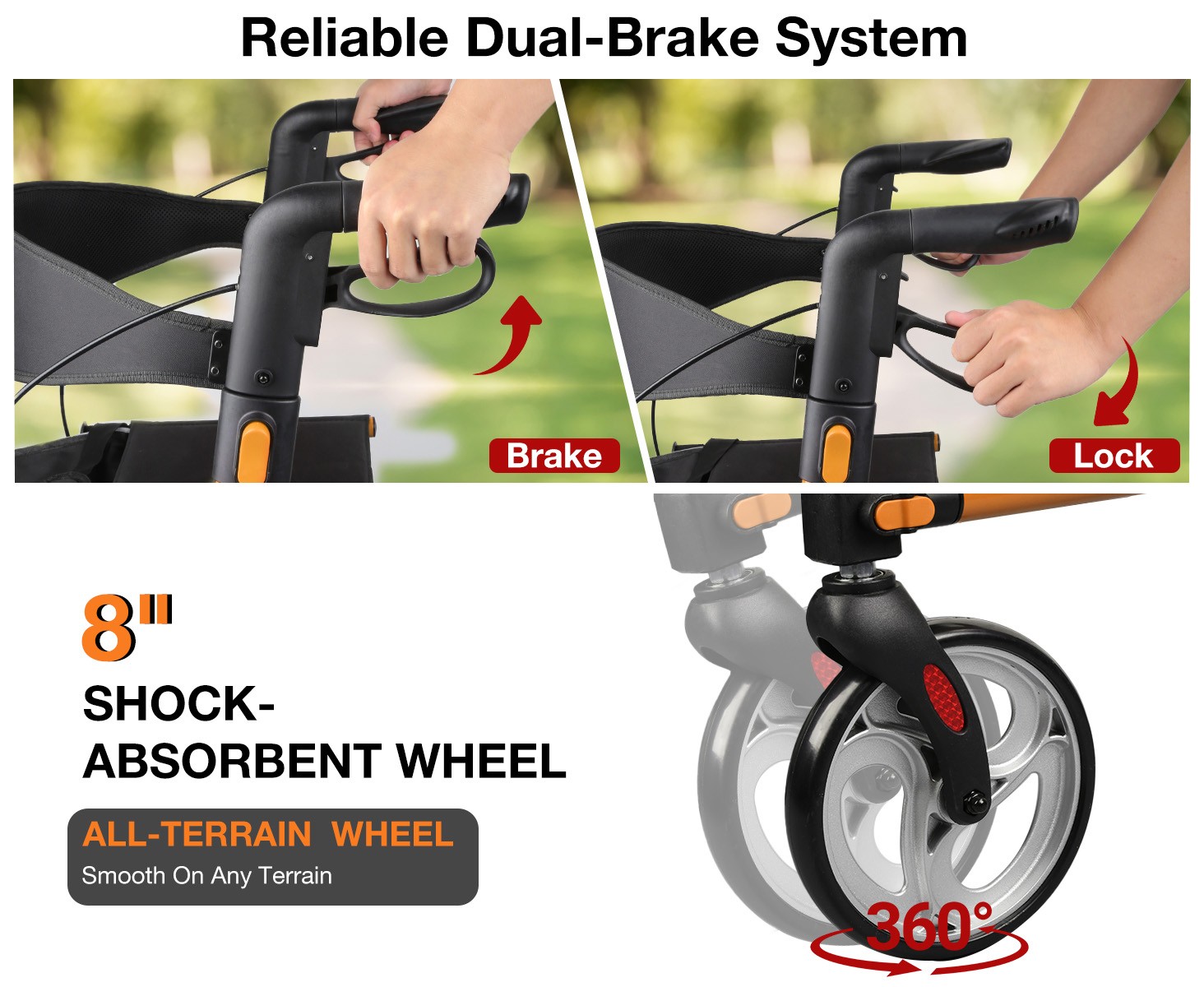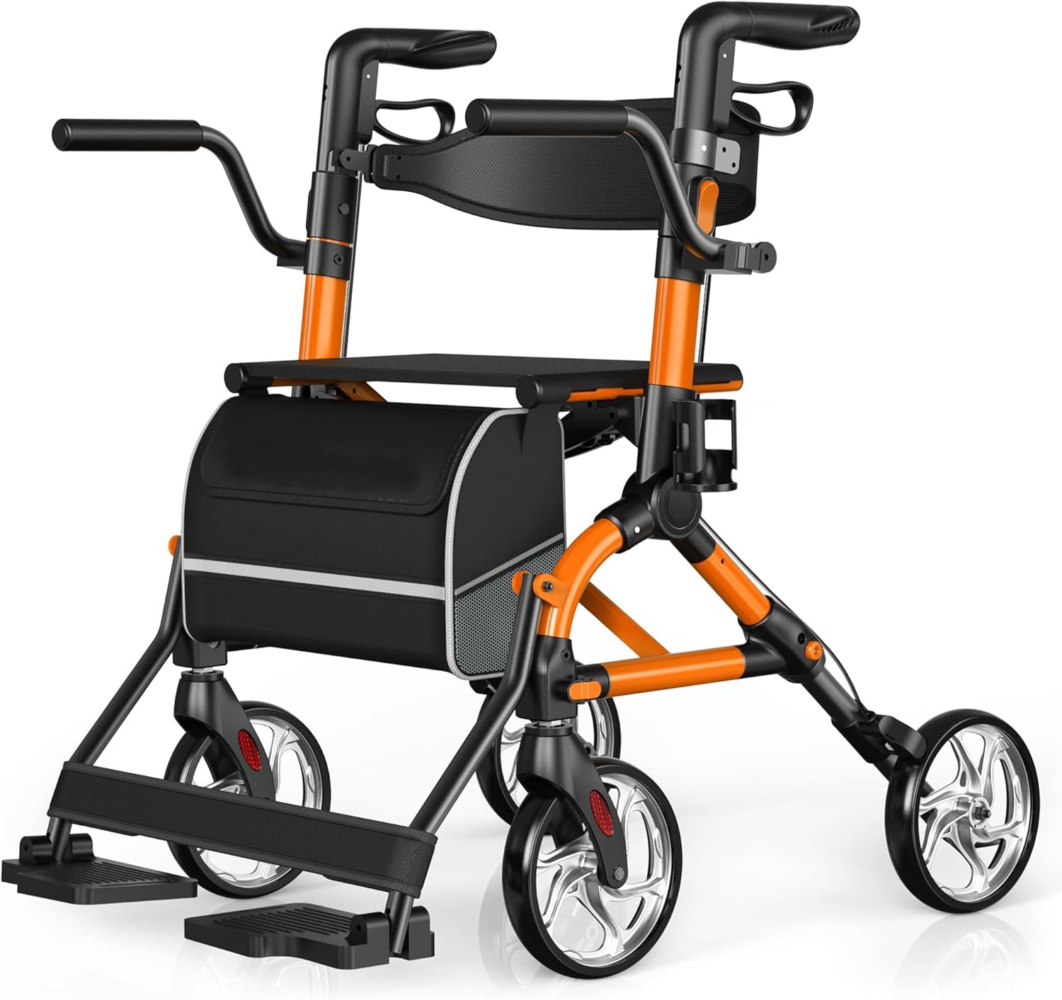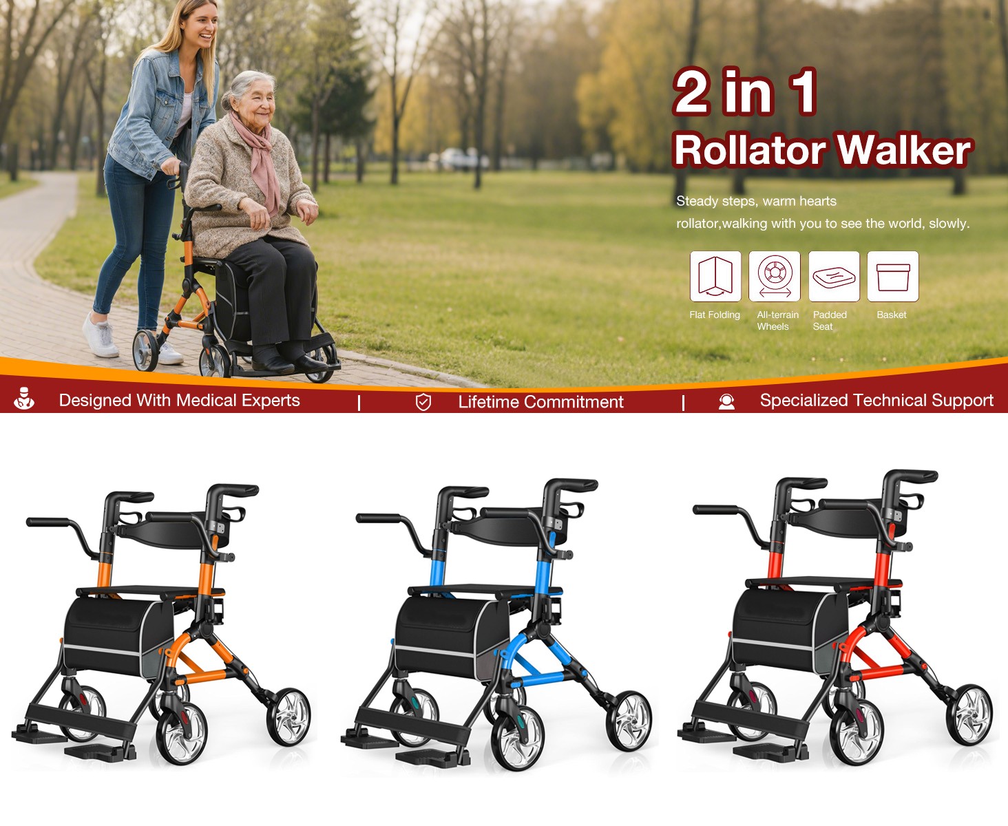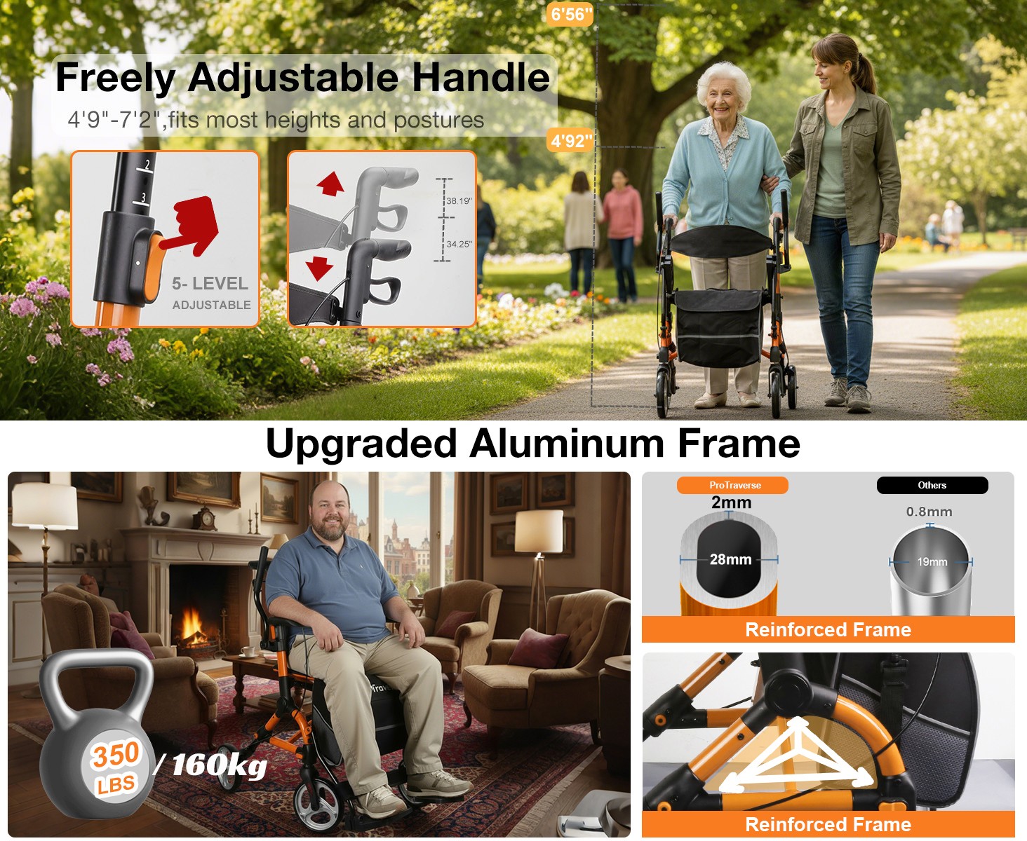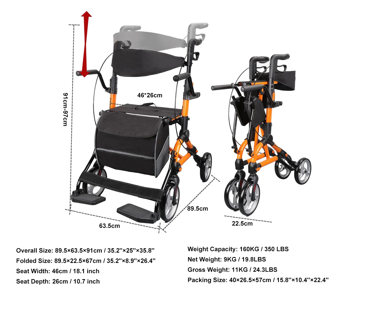 Además, incluye un cómodo asiento, sistema de freno de seguridad y una espaciosa bolsa de almacenamiento, lo que permite a los usuarios descansar y llevar sus pertenencias personales con facilidad. Este modelo combina un estilo moderno con practicidad, lo que lo convierte en un andador ideal tanto para uso en interiores como en exteriores.