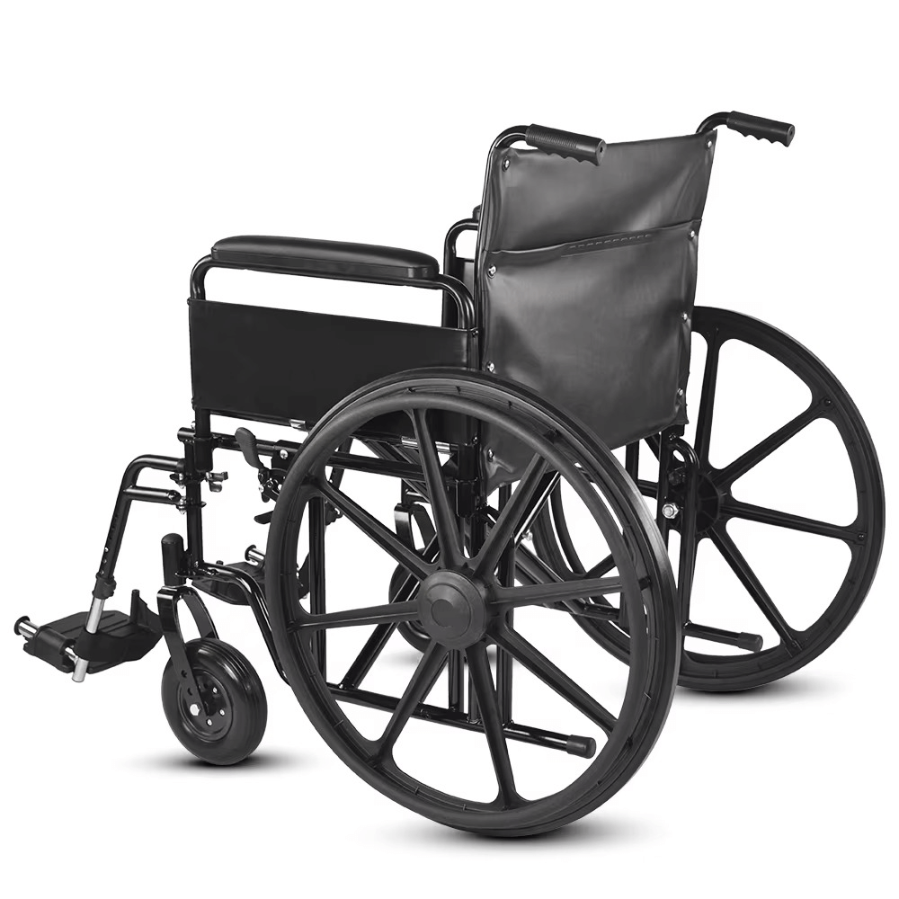 La RMW-0018 es una silla de ruedas bariátrica ancha y plegable para adultos que pesan 227 kg (500 lb) con un asiento de 56 cm (22 pulgadas). Presenta un diseño ultrarresistente para adaptarse a pacientes con asientos más anchos y mayor capacidad de peso.