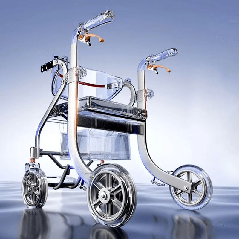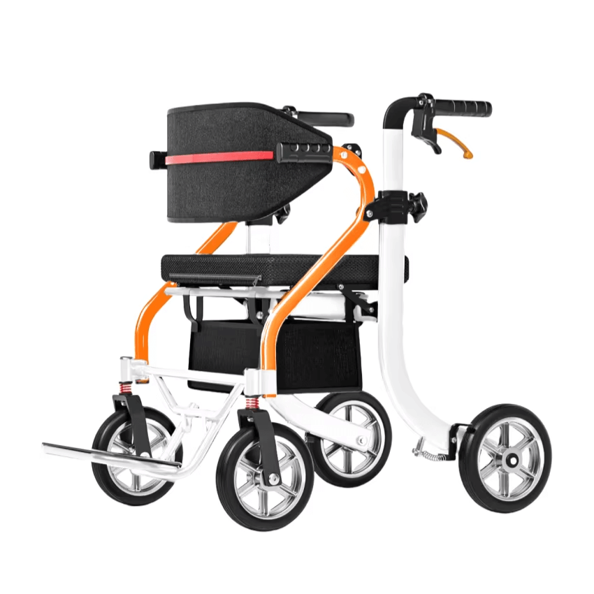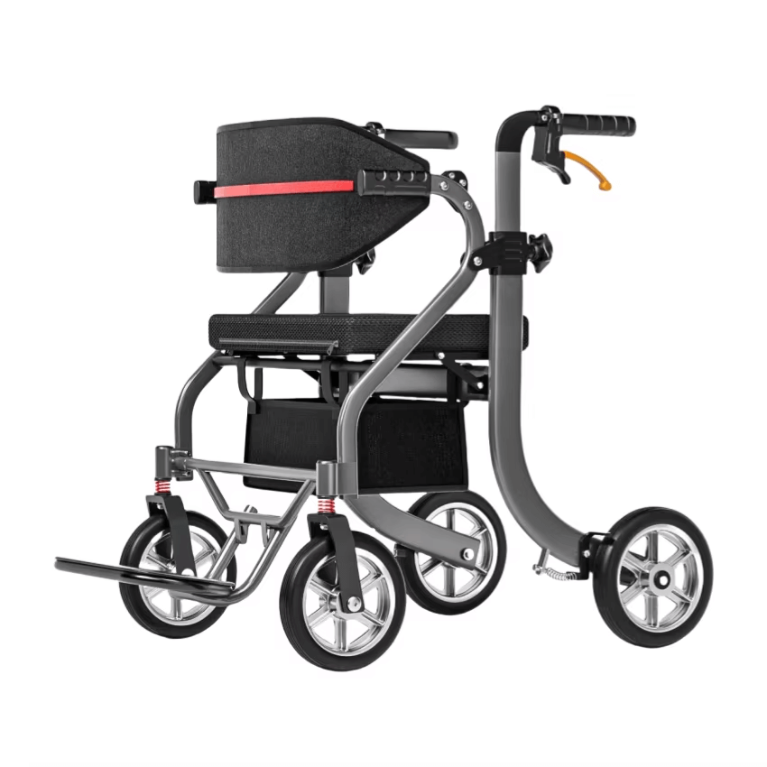 El RMW-0030 es un andador y silla de transporte multifuncional que ofrece una solución innovadora y práctica que combina el apoyo a la movilidad que proporciona un andador a las personas mayores con la comodidad de una silla y una silla de transporte en un solo producto. Se convierte fácilmente de andador a silla de ruedas, simplemente girando el respaldo y pisando el pedal.