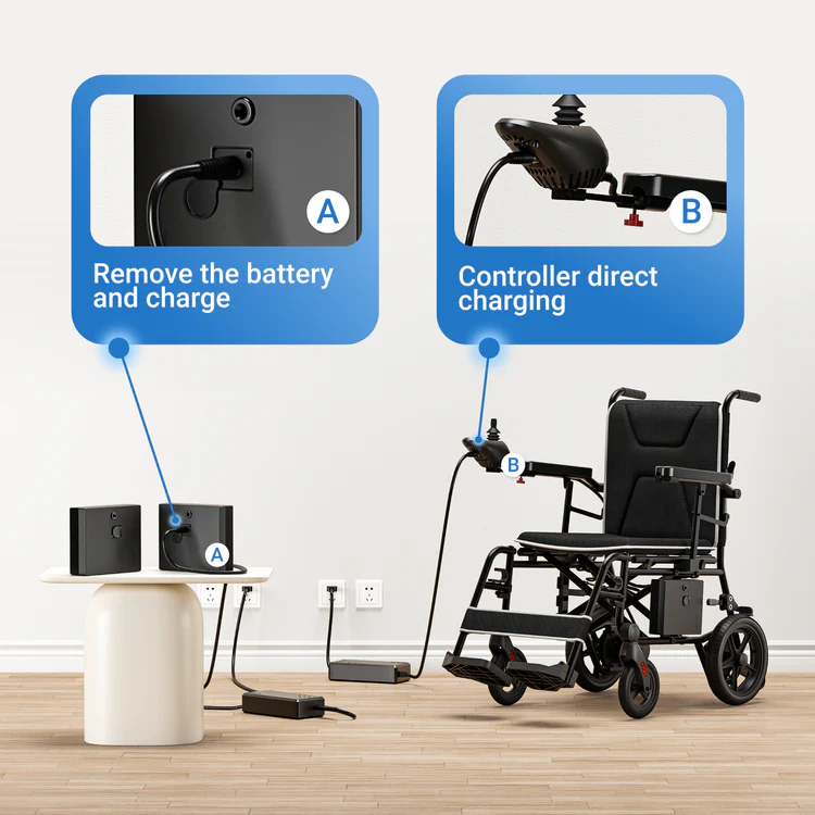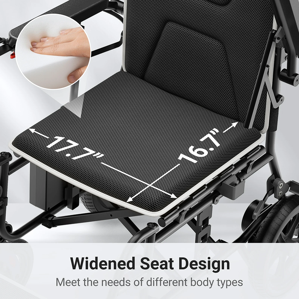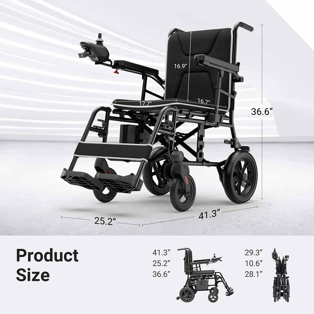 La RPW-201 es una silla de ruedas eléctrica plegable y ligera, ideal para la movilidad diaria y los viajes. Esta silla de ruedas eléctrica, compacta y plegable, se pliega en segundos para facilitar su almacenamiento y transporte en aviones, coches, trenes y otros lugares. Está equipada con un panel digital LCD y un control remoto Bluetooth que ocupa poco espacio.
